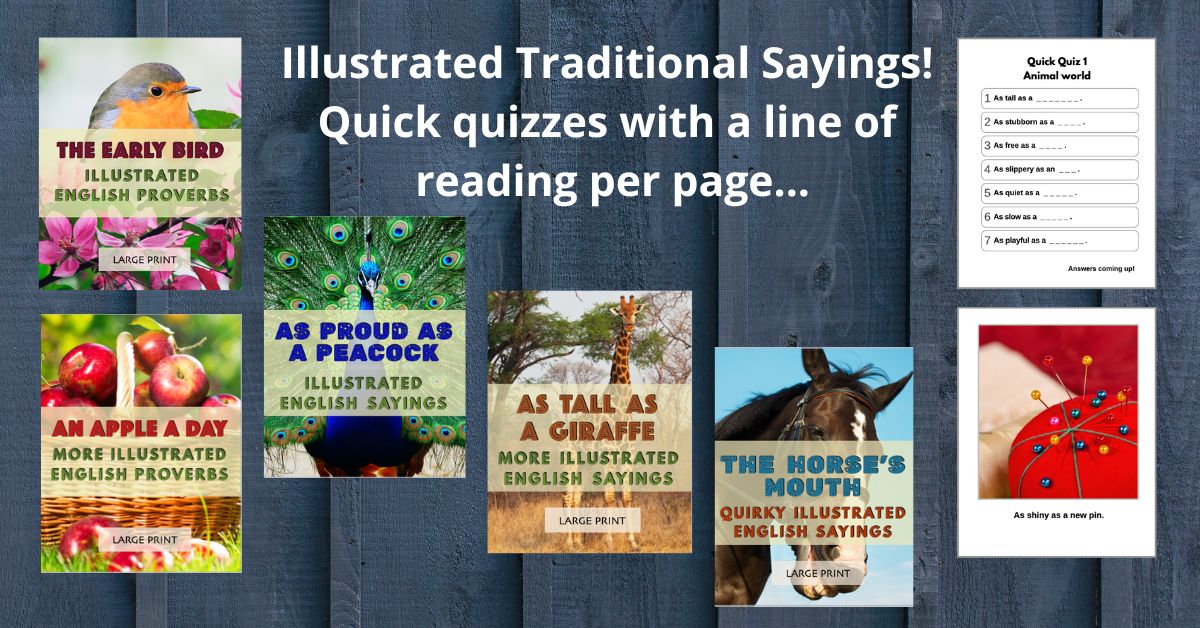 As well as creating English language resources, I have another small ‘passion project’ – creating books for people living with dementia or concentration challenges (with input from people with expertise in this area). So far these include puzzle books (with ‘bite-sized’ puzzles), illustrated classic poetry anthologies, guest books of various kinds, memoir journals, quizzes, and reading for reminiscence. My official author name for these is Unforgettable Notes (as I started off with the guest books).